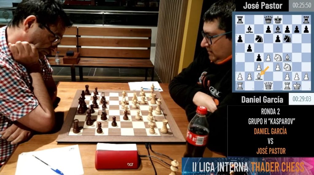 Partida en directo de la segunda ronda de la II Liga Thader Chess. Daniel García contra José Pastor.