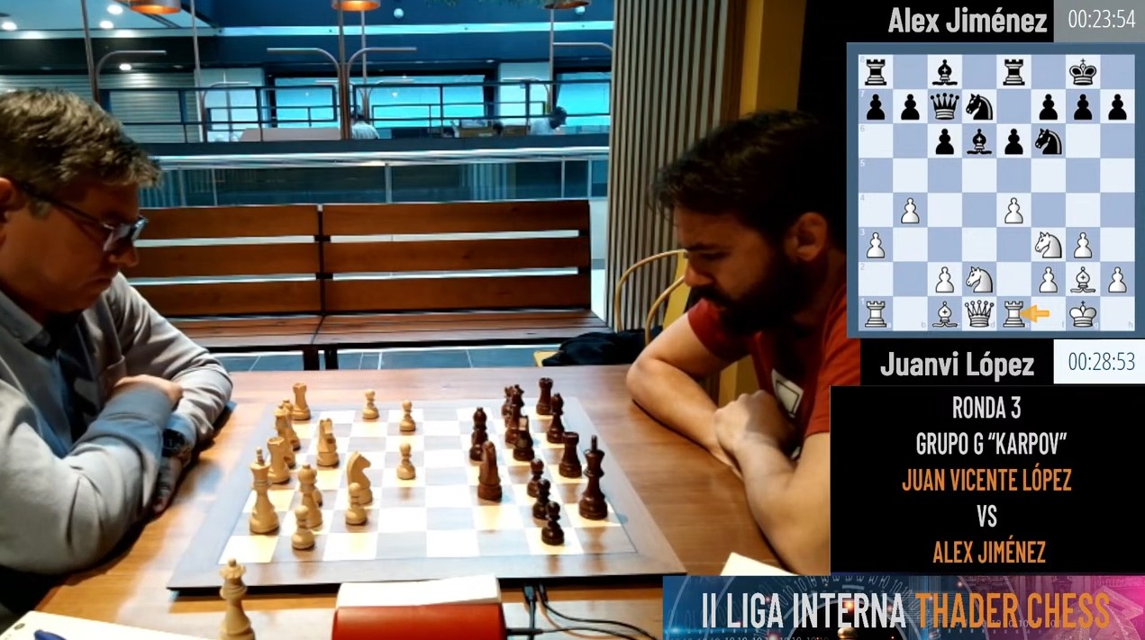 Partida en directo de la tercera ronda de la II Liga Thader Chess. Juan Vicente López contra Alex Jiménez.