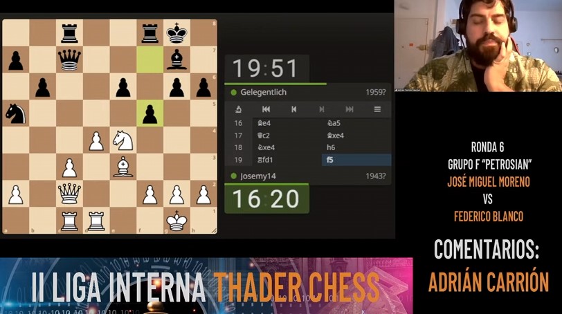 Partida en directo de la sexta ronda de la II Liga Thader Chess. José Miguel Moreno contra Federico Blanco.