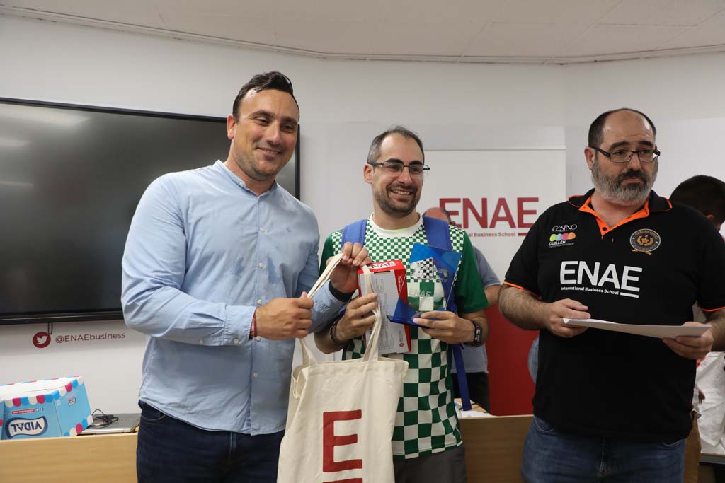 Al acabar el torneo se procedió a la entrega de premios y regalos, conducida por el anfitrión Pedro López Carreño, responsable de Empleo/RSC de ENAE e impulsor y coorganizador del evento. Para los más pequeños hubo trofeo para los tres primeros de cada categoría (sub-8/10/12/14), reloj de ajedrez para los primeros de cada una y regalo de chuches, cortesía de Vidal Golosinas, y camisetas con los personajes diseñados por Santi Ayala. Para los mayores, trofeo y premio en metálico para los 5 primeros clasificados; y trofeos, cargadores inalámbricos y bolsa de regalos ENAE para los de las categorías femenina, veterano, socio del club, sub-1700 y sub-1800.