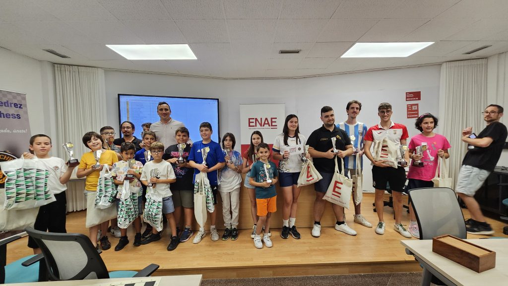 Este sábado 15 de junio Thader Chess ha organizado, junto con ENAE Business School, el I ENAE Chess Open, disputado en las instalaciones de ENAE, con pleno de participación y gran nivel de ajedrez. El evento ha estado dividido en dos torneos, uno general (A) sin restricción de edad y otro infantil (B) para jugadores sub-14, con más de 100 participantes inscritos entre ambos.