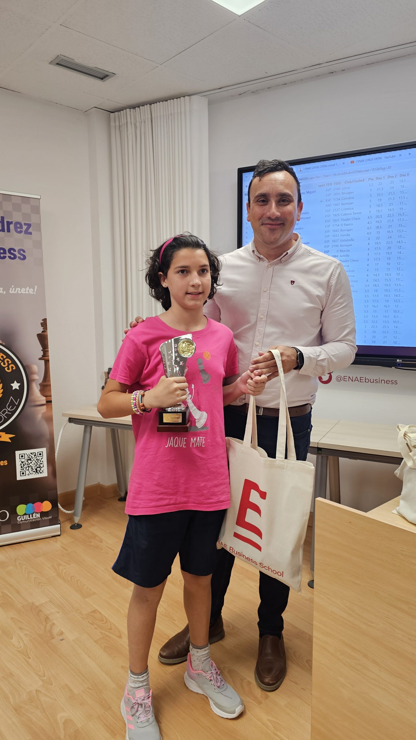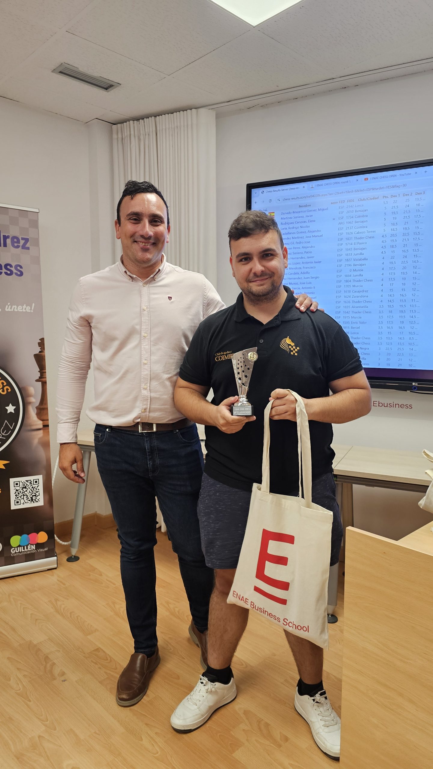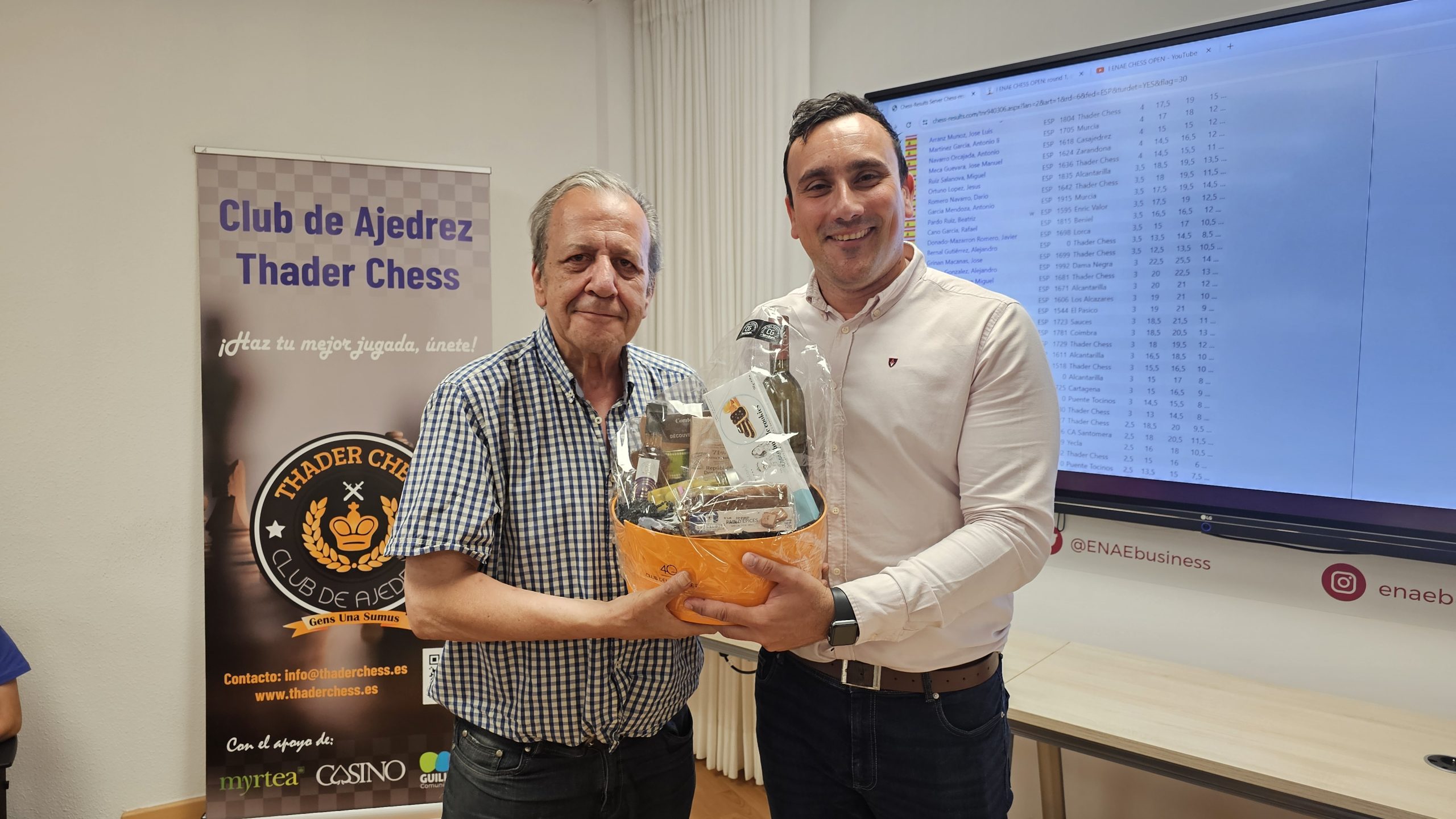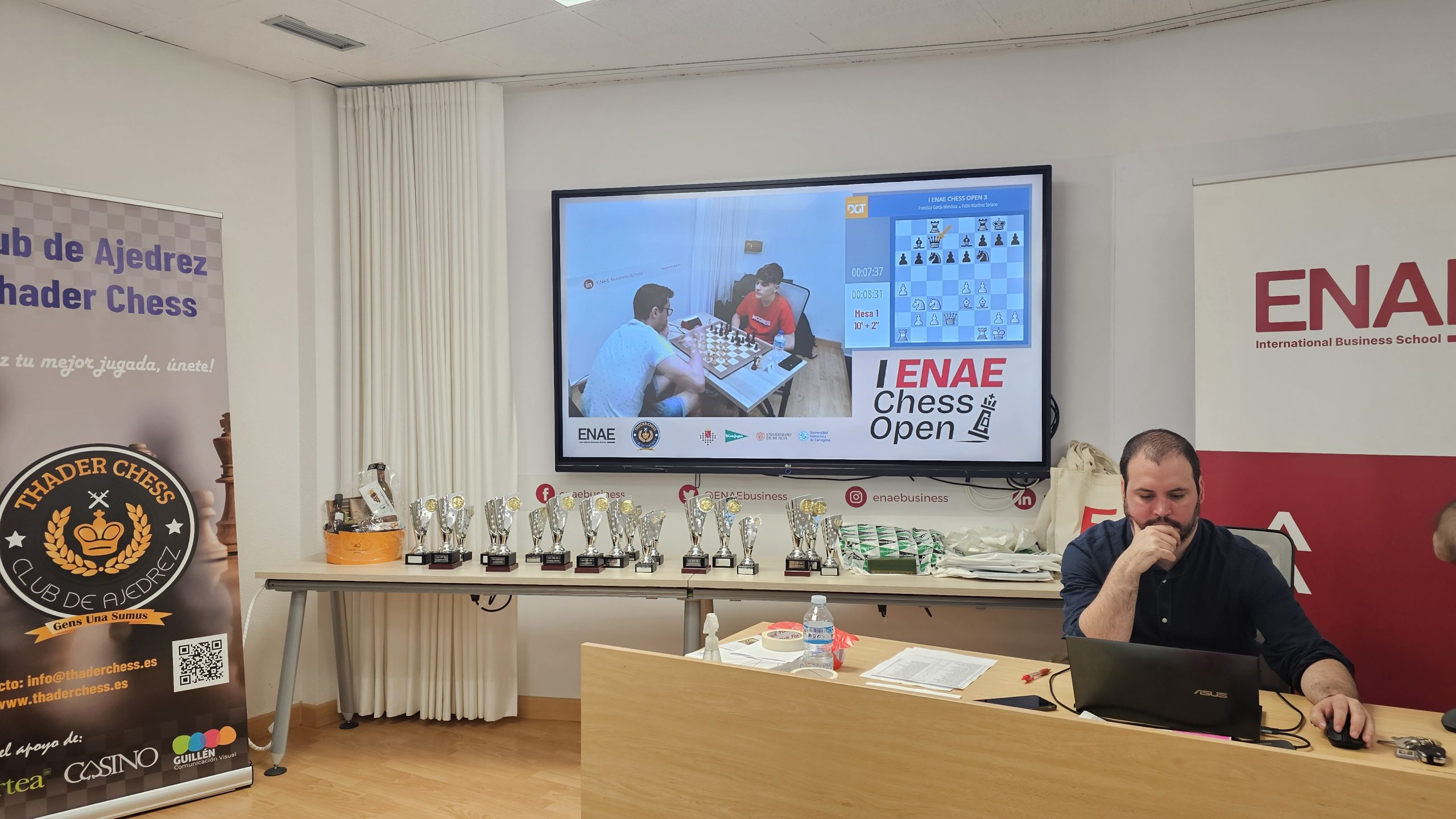 Gracias a todos los participantes por venir, esperamos de corazón que lo hayáis pasado bien. Gracias a ENAE Business School, a Pedro López Carreño y a todo el personal de ENAE que ha estado volcado con el evento. Gracias a todos los compañeros de Thader Chess que han participado con su trabajo y apoyo, juntos hacemos un gran club.