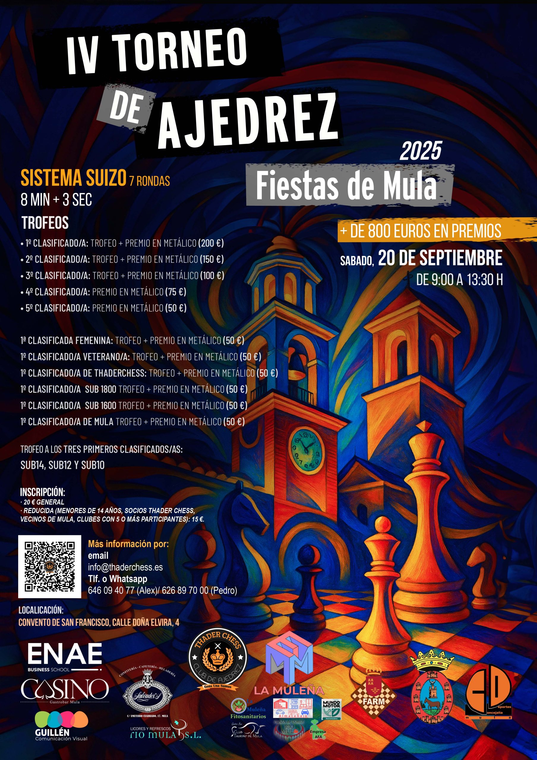 Es un honor para el Club de Ajedrez Thader Chess ENAE presentar la IV edición del Torneo Fiestas de Mula 2025