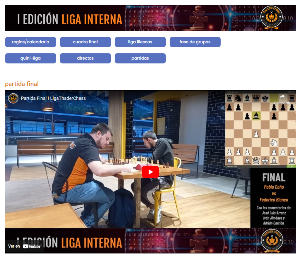 En tercero la página de la fase final de I Liga Thader Chess con 1108 visitas.