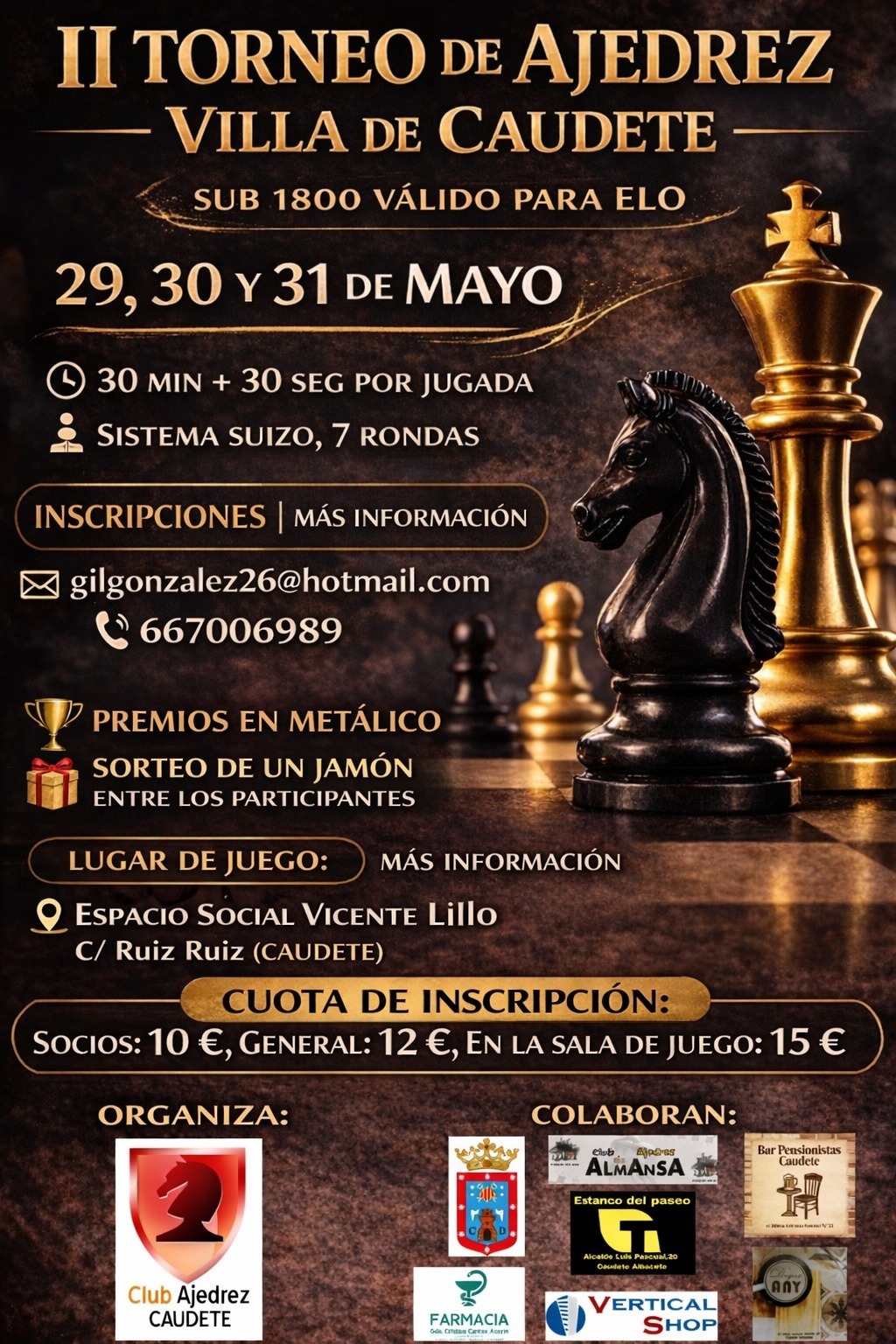 • Aforo: Máximo de 50 jugadores por orden de inscripción (mínimo de 30 para su celebración).