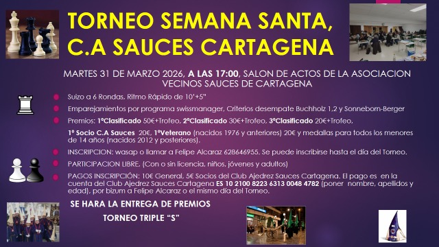 Socios del Club Ajedrez Sauces Cartagena: 5€.